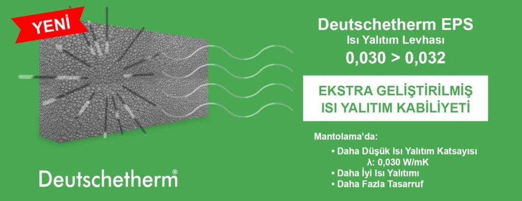 Deutschetherm Isı Yalıtım Sistemleri ekstra geliştirilmiş ısı yalıtım kabiliyetiyle ve Deutschetherm Isı Yalıtım Yapıştırıcısı, Sıvası ve Dekoratif Sıvası kullanır ise enerji giderlerinde %50’ye varan ısı yalıtımı tasarrufu sağlar.